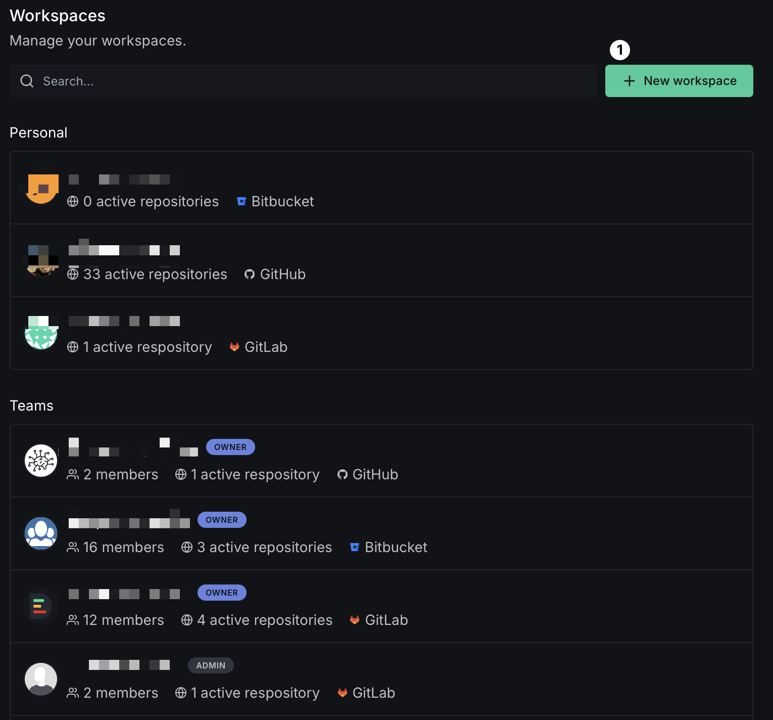 - Workspaces: Quick access to your workspace management. Refer to Workspaces section below for more details.