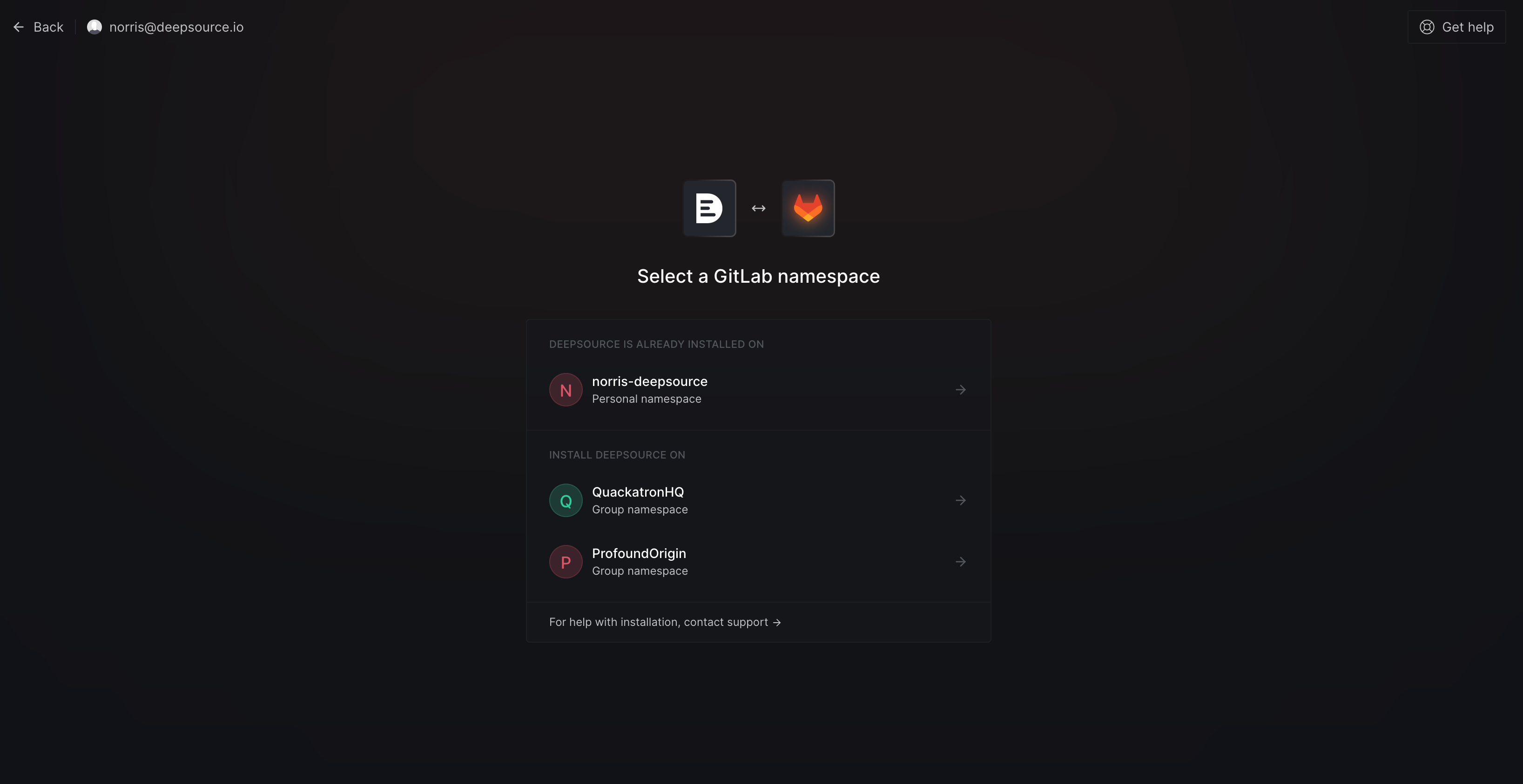 - On the DeepSource Sign-up page, click “Continue with GitLab”.