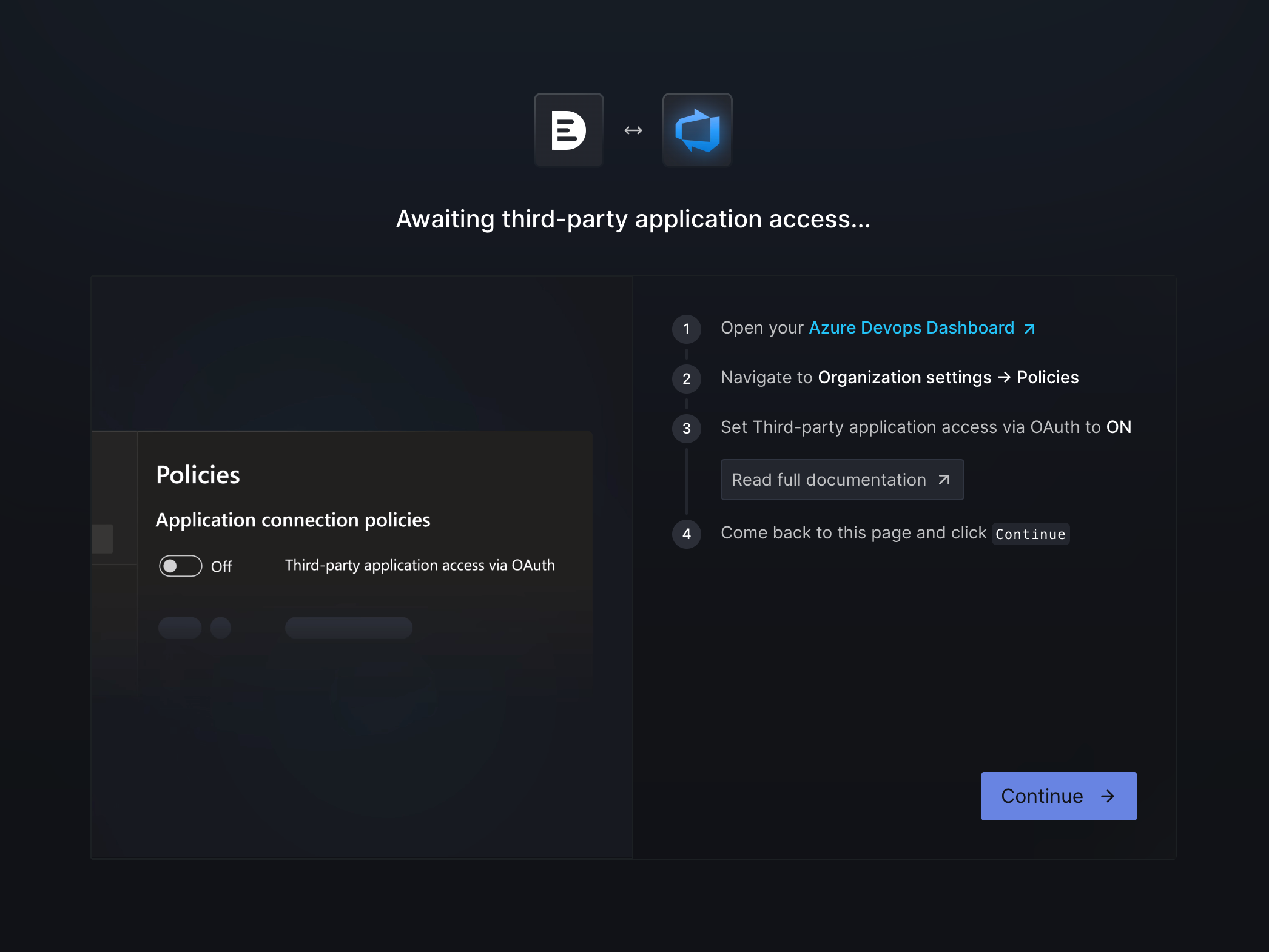 - On the DeepSource Sign-up page, click “Continue with Azure DevOps Services”.