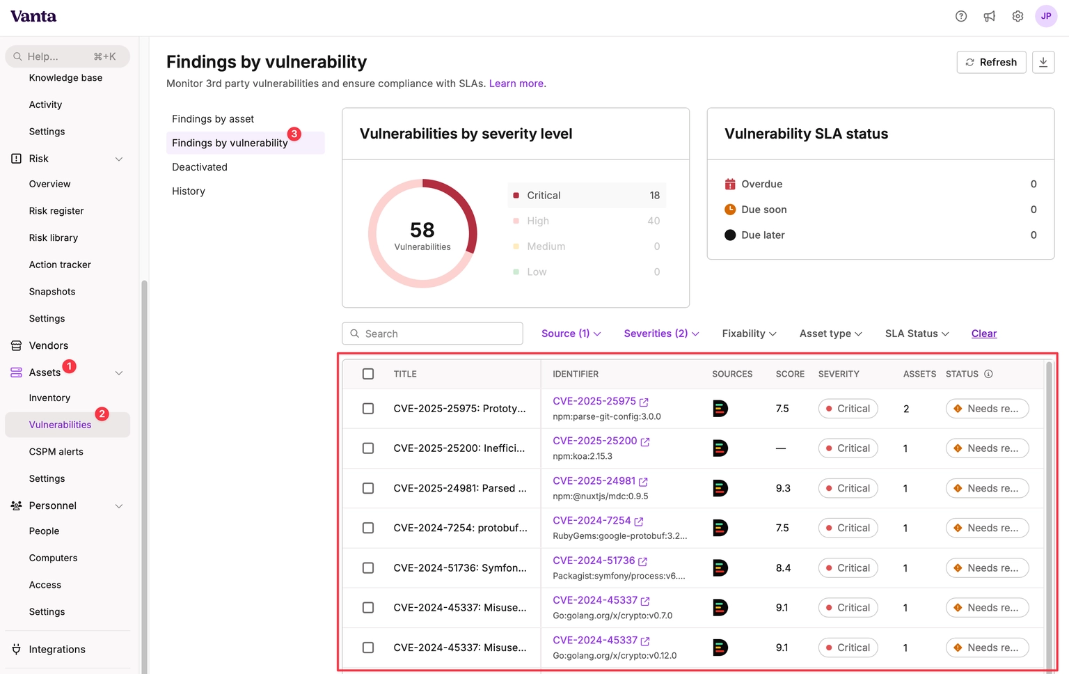 • Automatic reporting of vulnerable dependencies to your Vanta dashboard