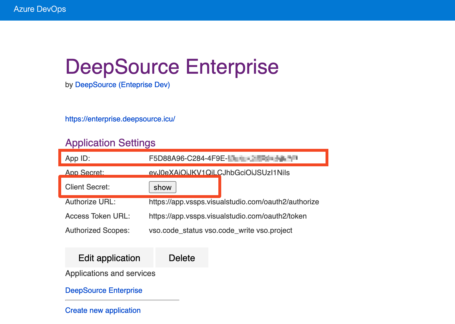 App ID,Client Secret, andAuthorize URLfrom the next page and enter them in the DeepSource Enterprise admin console.