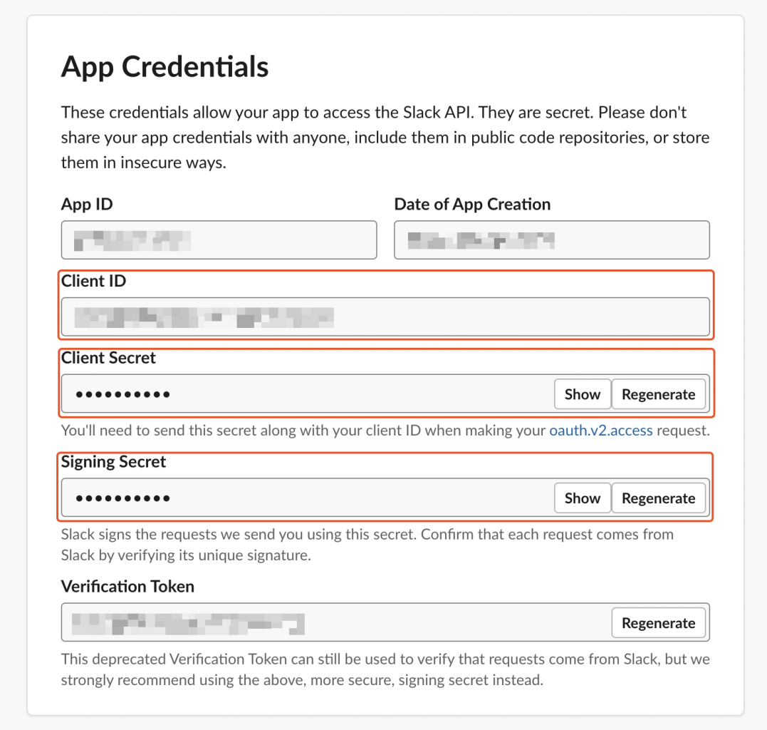 Scroll down and navigate to the "App Credentials" section and note down the following values:
